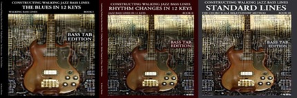 3 book set complete with over 360 choruses of jazz walking bass lines completely written out featuring jazz standards , bebop, latin jazz, the blues in 12 keys and rhythm changes in 12 keys.